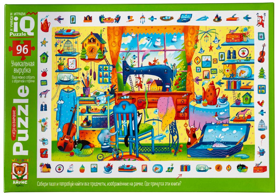 Яркая и увлекательная головоломка из серии «IQ пазлы» не только порадует и надолго увлечёт ребёнка, но и поможет ему подготовиться к учёбе. Собирая сюжетный рисунок, он потренирует внимание, мелкую моторику и усидчивость, научится самостоятельности и разовьёт логическое и пространственное мышление. В коробке 96 деталей, которые складываются в картинку, на которой запечатлён момент из жизни швейной мастерской и её обитателей — озорных животных. Но соотнести элементы друг с другом и собрать рисунок — это только полдела. Когда пазл будет готов, попросите ребёнка найти на рисунке предметы, расположенные в рамке по контуру — такая игра на внимание понравится и самым маленьким детям, и ребятам постарше. И ещё одна особенность «IQ пазлов»: каждая их деталь имеет уникальную форму и встаёт только на своё место. Поэтому пазл можно складывать несколькими способами, в том числе с оборота, без опоры на картинку. Подходит для детей от 6 лет.