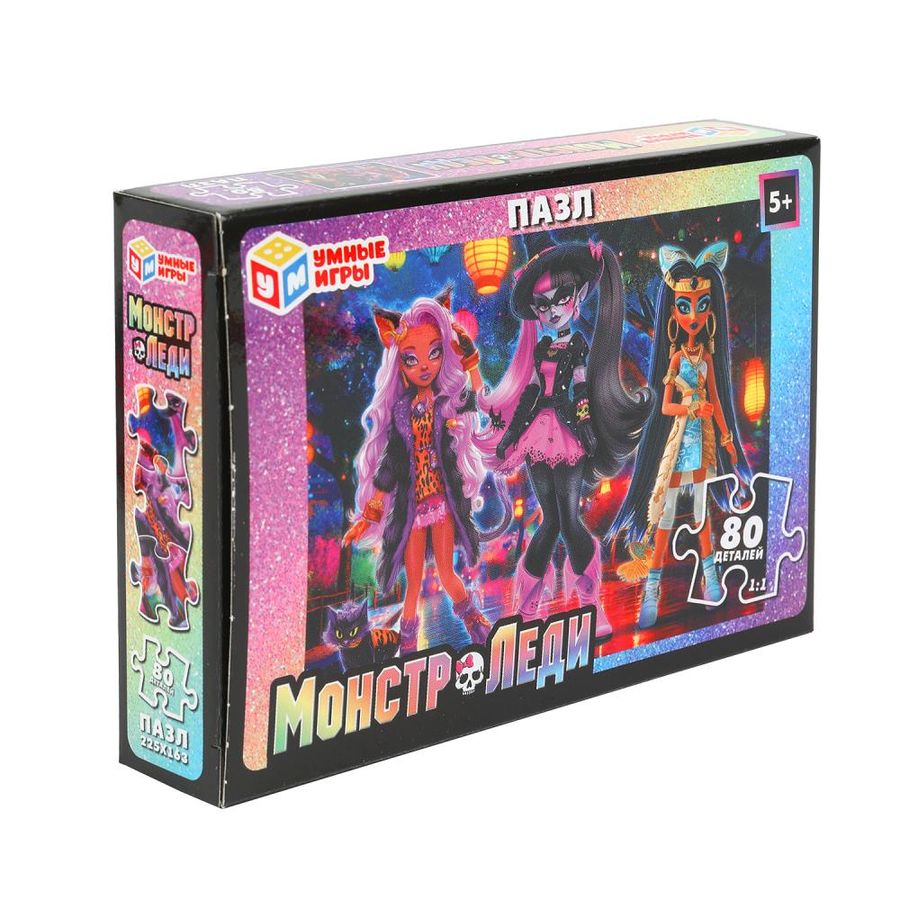 Классические пазлы в коробке «Монстр-леди» ТМ «Умные игры» непременно понравятся маленьким любознайкам: - 80 деталей - размер готовой картинки: 163 х 225 мм - любимые персонажи - яркие цвета - все элементы хорошо и плотно соединяются друг с другом Данный пазл представляет собой игру-головоломку, в которой необходимо в правильной последовательности соединить элементы друг с другом и получить в результате красочную картинку с изображением очаровательных девушек в необычных образах. Сборка пазлов – это очень увлекательное занятие, в процессе которого дети учатся искать и совмещать детали разной формы, с каждым разом делая это всё лучше и быстрее. Собирая пазлы ТМ «Умные игры», ребёнок будет развивать: - внимание - цветовое восприятие - логическое мышление - мелкую моторику - усидчивость Размер: 130 x 90 x 25 мм. Материал: картон. Рекомендовано детям от 5-ти лет.