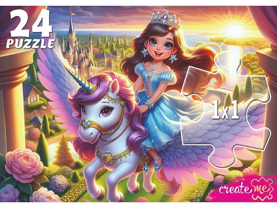 Пазлы 24 элемента Макси Полет принцессы на единороге РЫЖИЙ КОТ УК24-0211