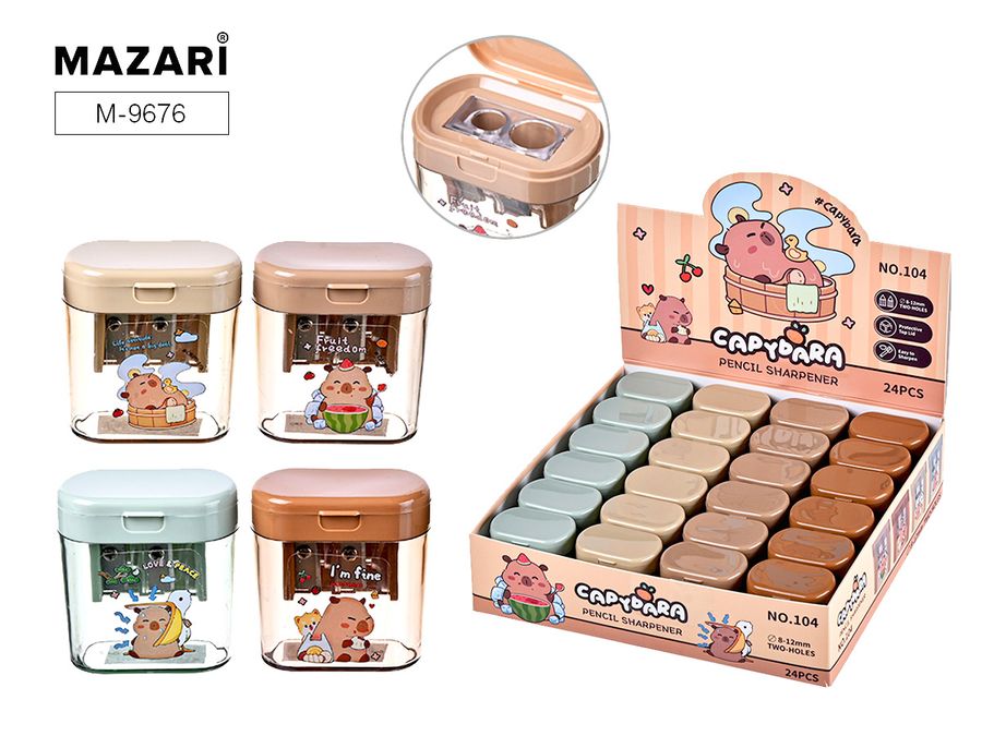 Точилка 2отв. пластик контейнер Капибара MAZARI M-3030