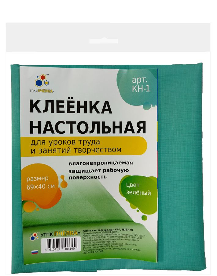 Скатерть для труда 40х69см зеленая ПЧЕЛКА КН-1 (уни)