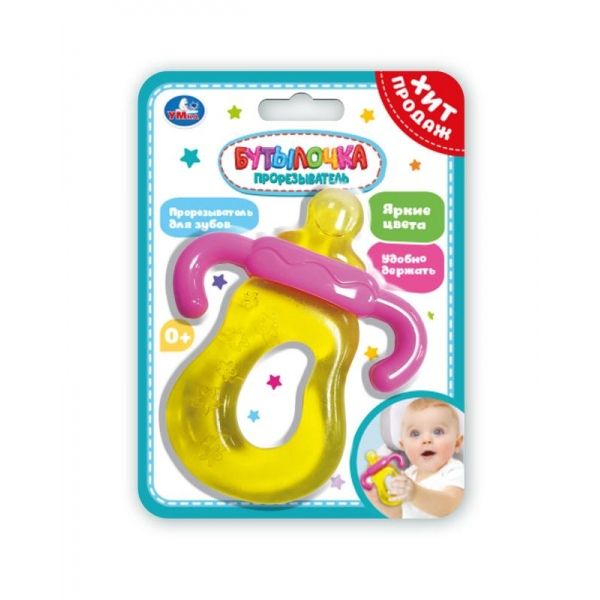 Прорезыватель «Бутылочка» ТМ «УМка» – необходимая вещь в период роста зубок у малыша: - яркие цвета и интересная форма - удобно держать - рельефная поверхность Основная функция такой игрушки – массаж дёсен, который способствует притоку крови, формирует правильный прикус и облегчает боль при прорезывании зубов. Яркий прорезыватель в виде детской бутылочки с отверстием удобно держать маленькими ручками. Игрушка изготовлена из нежных, но прочных и экологически чистых материалов, что делает её удобной для прикуса. Охлаждать только в холодильнике, не помещать в морозильную камеру! Использование прорезывателя ТМ «УМка» в качестве игрушки развивает: - зрительное восприятие - тактильные ощущения - мелкую моторику - координацию Размер игрушки: 10,5 см. Материал: полимерные материалы. Рекомендовано для детей раннего ясельного возраста.