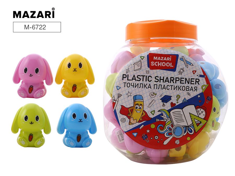 Точилка 1отв. пластик контейнер Bunny ассорти MAZARI M-6722