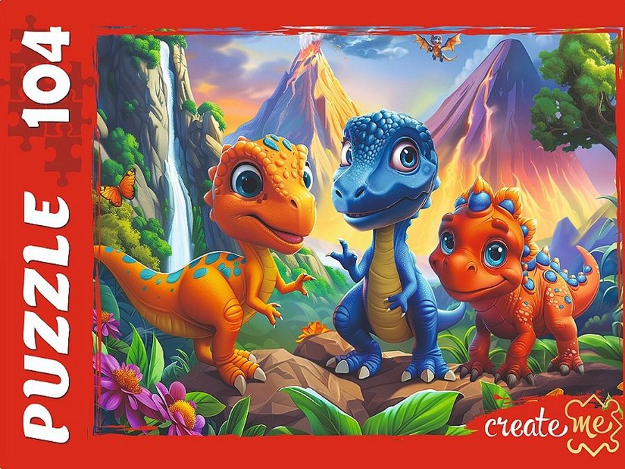 Пазлы 104 элемента Динозавры у вулкана РЫЖИЙ КОТ Ф104-2009