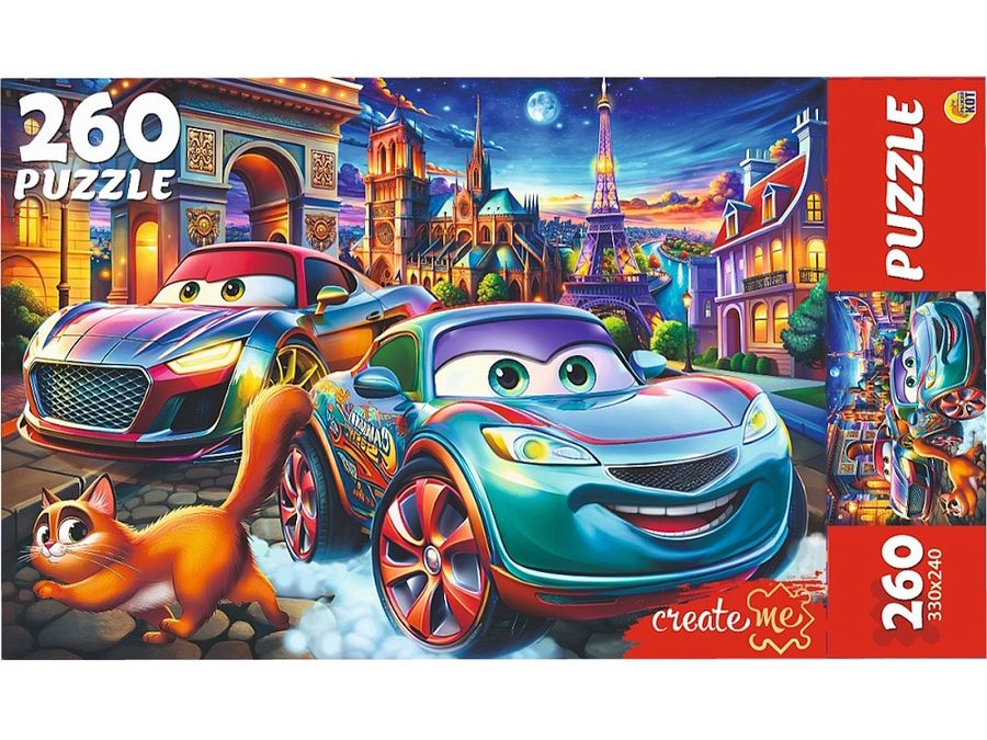 Пазлы 260 элементов Машинки в ночном Париже РЫЖИЙ КОТ УК260-0241