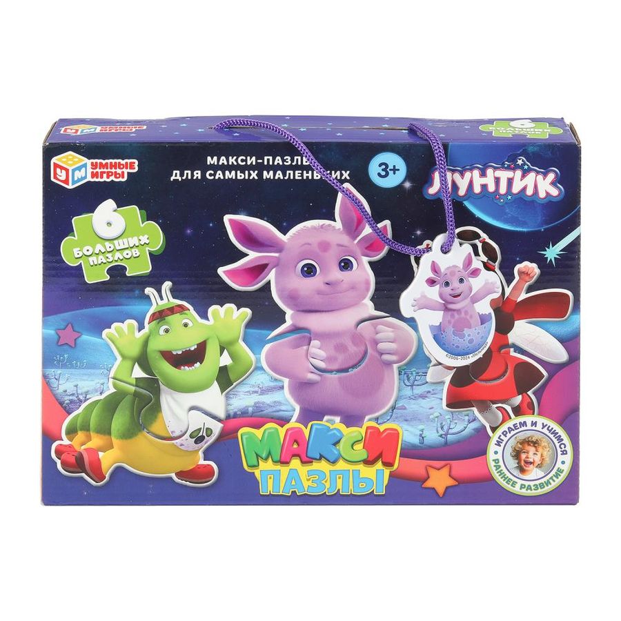 Макси-пазлы для малышей «Лунтик» ТМ «Умные игры» — отличная развивающая игра для самых маленьких: - 6 больших пазлов - крупные детали - раннее развитие - удобно для детских пальчиков - любимые персонажи - красочный дизайн - плотный картон Задача ребёнка – подобрать половинки пазлов из набора так, чтобы собрать картинки с изображением героев известного мультсериала — всего 6 вариантов. Благодаря небольшому количеству деталей, малыш без труда сможет выполнить задание, с каждым разом делая это всё лучше и быстрее. Собирая пазлы ТМ «Умные игры», ребёнок будет развивать: - внимание - память - мышление - моторику - усидчивость Размер упаковки: 250 x 180 x 45 мм. Материал: картон. Рекомендовано детям от 3-х лет.