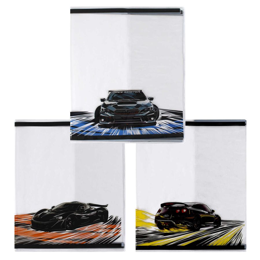 Обложки для тетрадей с рисунком арт.69104/ 200 НЕОНОВЫЕ ТАЧКИ (3 шт. в наборе, 350х216 мм, цвет: жёлтый, оранжевый, синий, чёрный, ПВХ плотностью 120 мкм, индивидуальная упаковка: ПЭТ-пакет)