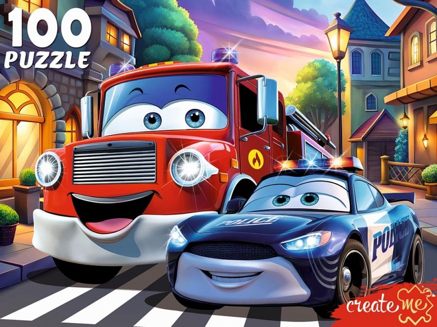 Пазлы 100 элементов Пожарная и полицейская машина РЫЖИЙ КОТ УК100-0236