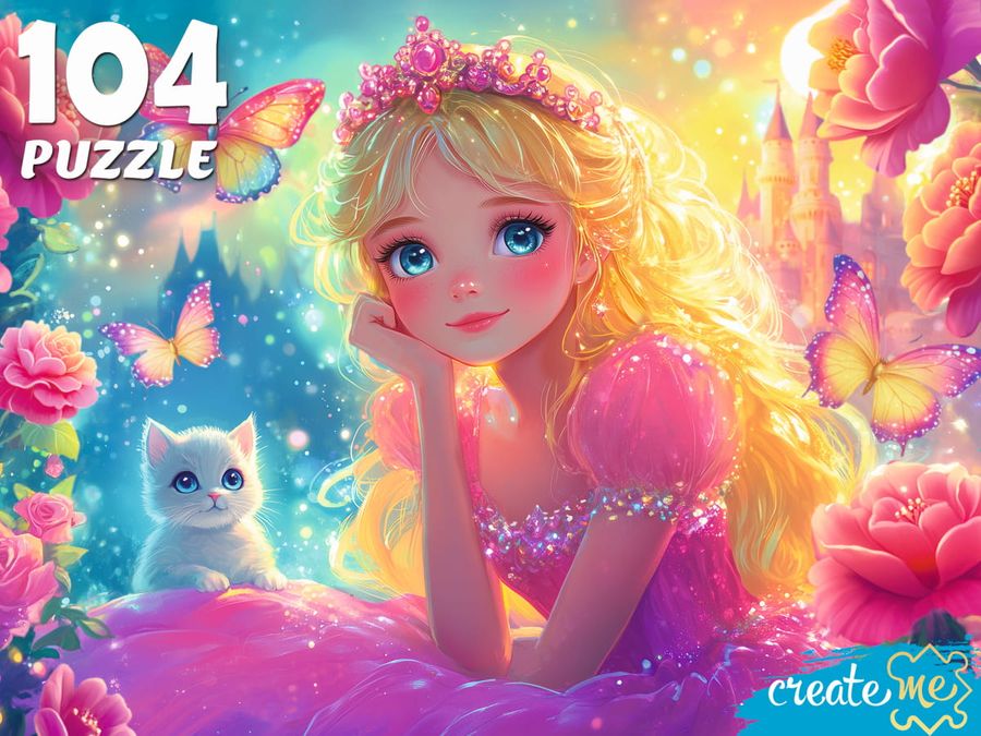 Пазлы 104 элемента Принцесса в розовом платье РЫЖИЙ КОТ Ф104-7604