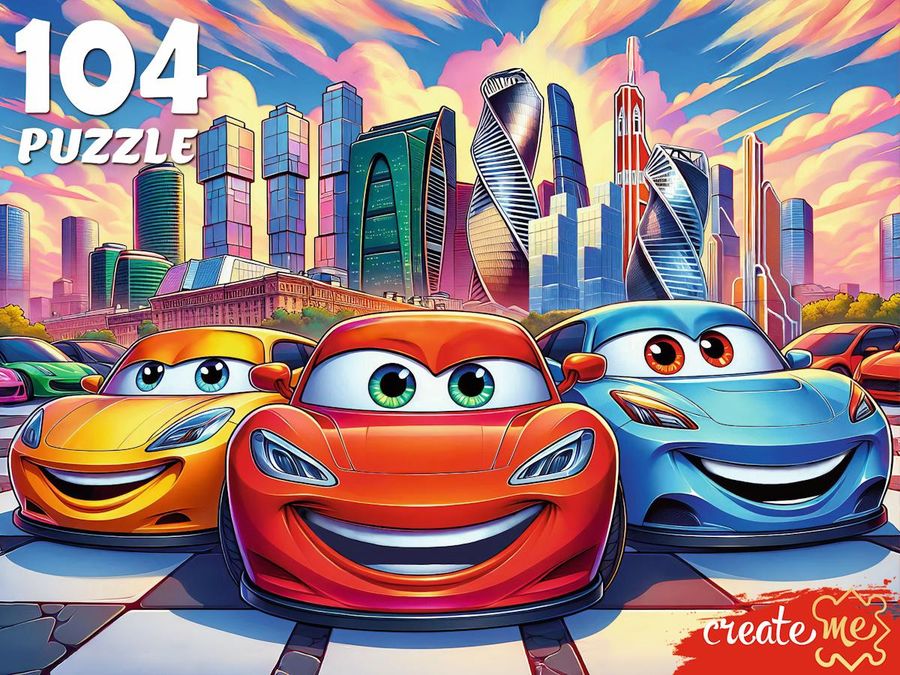 Пазлы 104 элемента Городские машинки РЫЖИЙ КОТ П104-7737