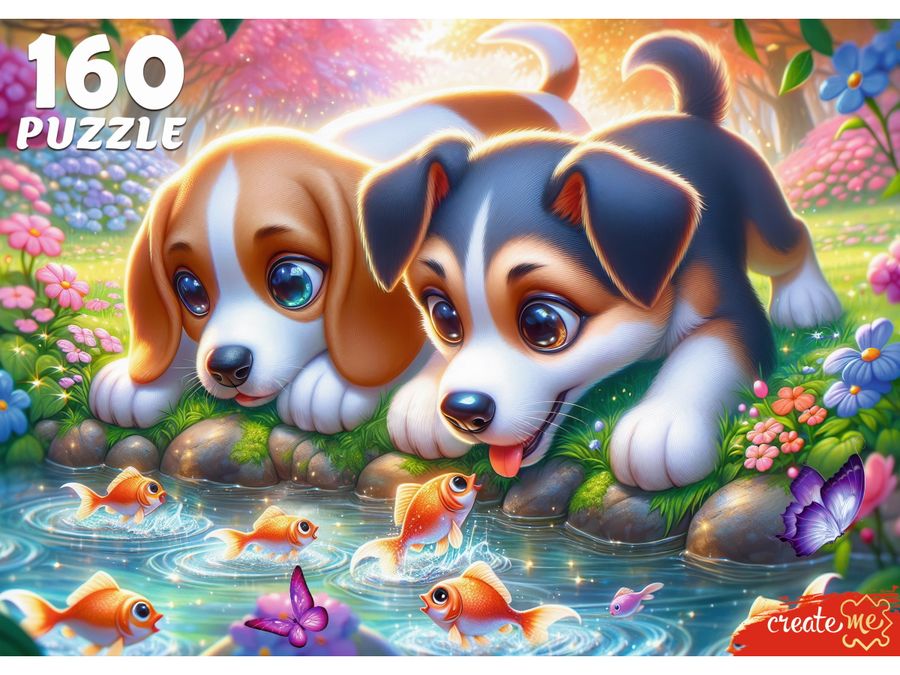 Пазлы 160 элементов Щенки и рыбки РЫЖИЙ КОТ Х160-7609