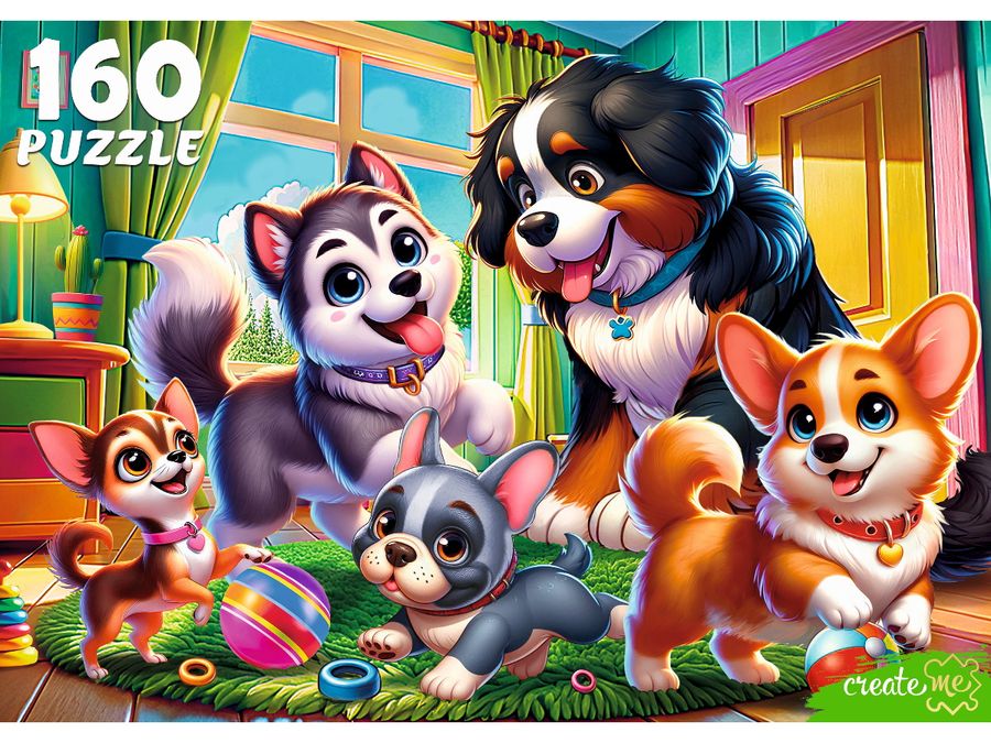Пазлы 160 элементов Милые щенки в комнате РЫЖИЙ КОТ Ф160-6641