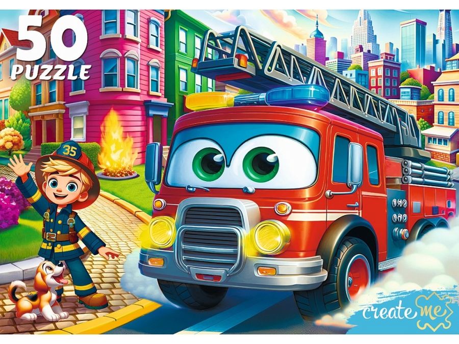 Пазлы 50 элементов Большая пожарная машина РЫЖИЙ КОТ УК50-0213