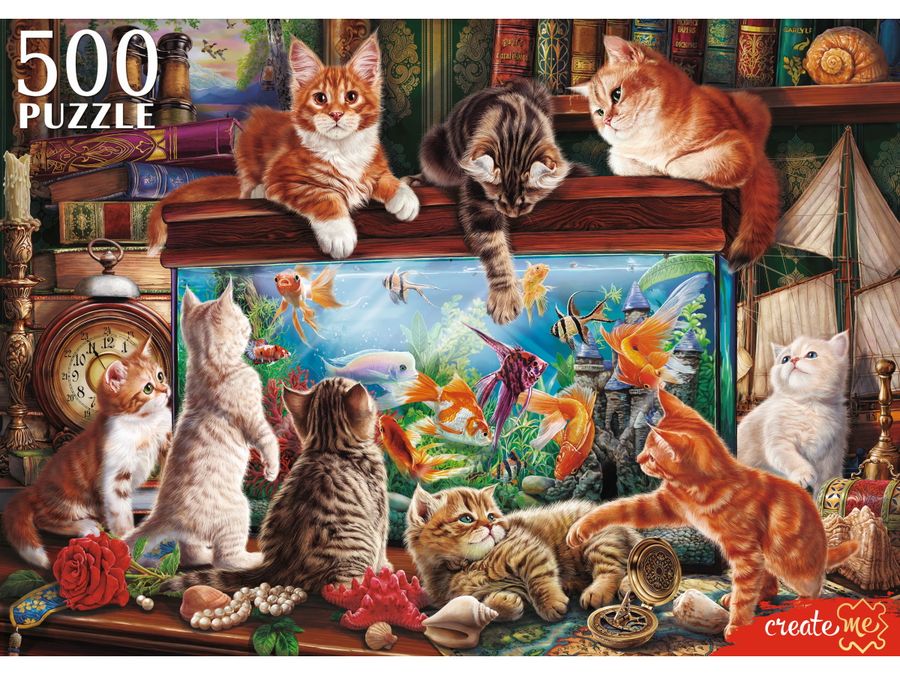 Пазлы 500 элементов Кошки у большого аквариума РЫЖИЙ КОТ Ф500-0191
