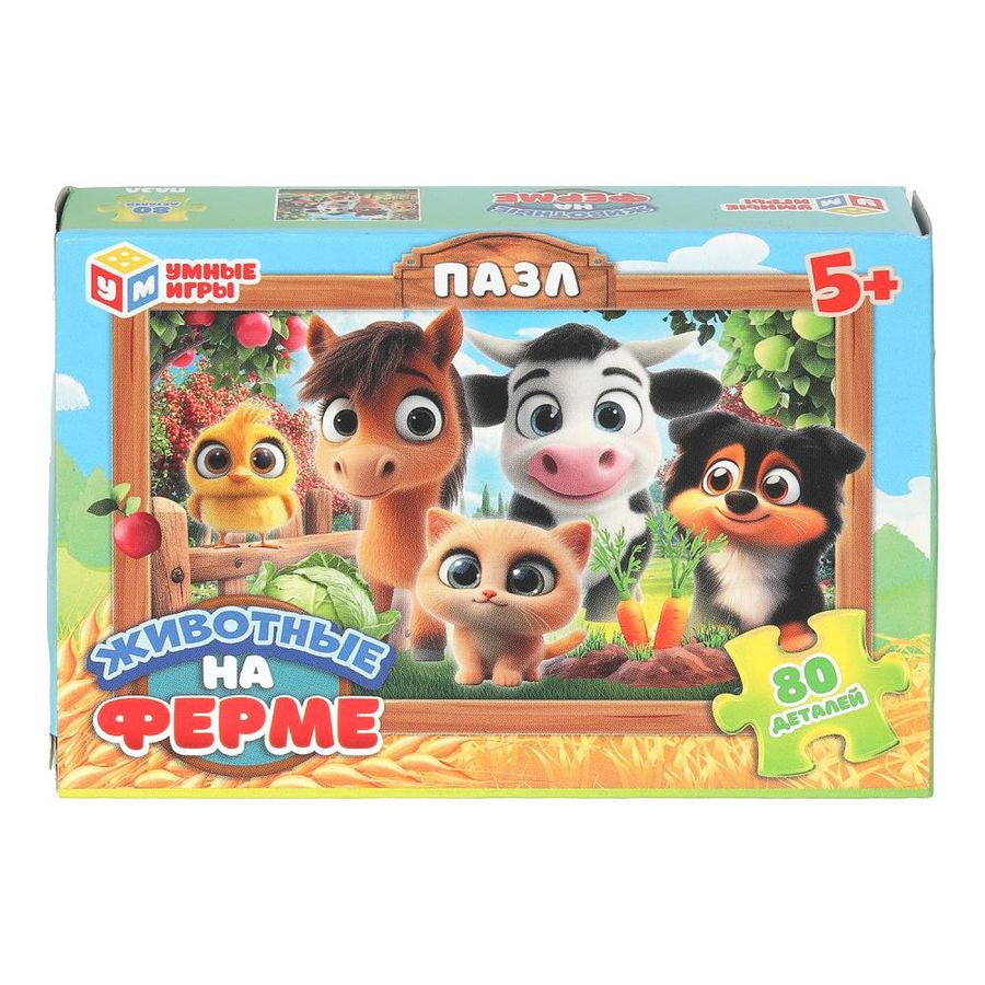 Классические пазлы в коробке «Животные на ферме» ТМ «Умные игры» непременно понравятся маленьким любознайкам: - 80 деталей - размер готовой картинки: 163 х 225 мм - насыщенные цвета - все элементы хорошо и плотно соединяются друг с другом Данный пазл представляет собой игру-головоломку, в которой необходимо в правильной последовательности соединить элементы друг с другом и получить в результате красочную картинку с изображением забавных обитателей фермы. Сборка пазлов - это очень увлекательное занятие, в процессе которого дети учатся искать и совмещать детали разной формы, с каждым разом делая это всё лучше и быстрее. Собирая пазлы ТМ «Умные игры», ребёнок будет развивать: - внимание - цветовое восприятие - логическое мышление - мелкую моторику - усидчивость Размер: 130 x 90 x 25 мм. Материал: картон. Рекомендовано детям от 5-ти лет. В упаковке 16 шт.
