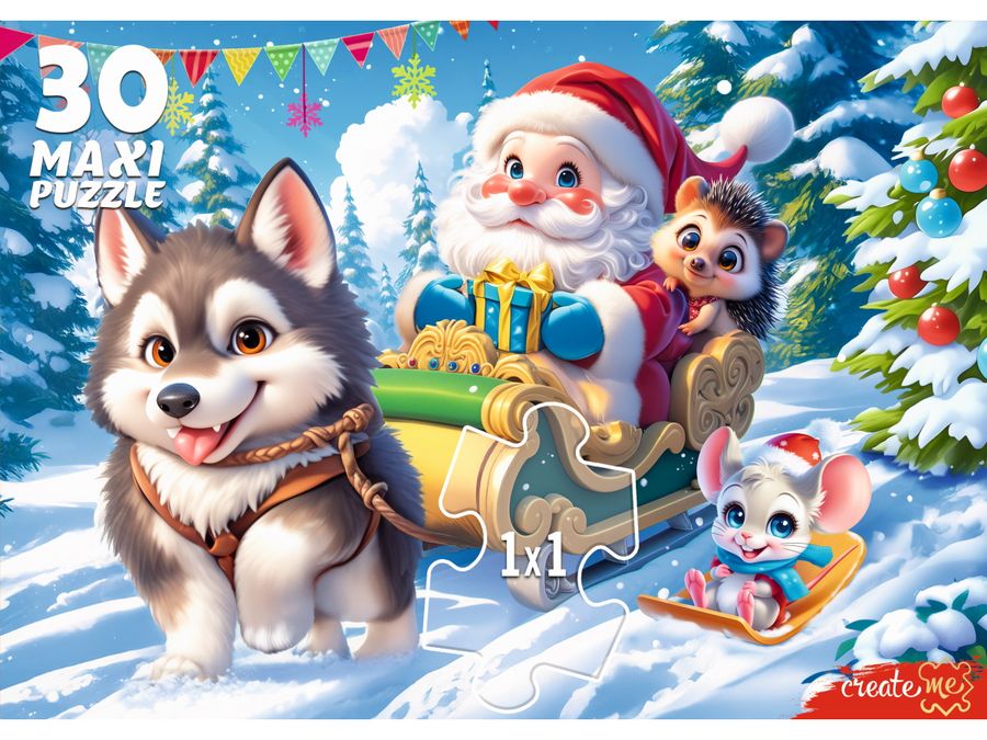 Пазлы 30 элементов Макси НГ Хаски и Дед Мороз РЫЖИЙ КОТ ПМ30-7580