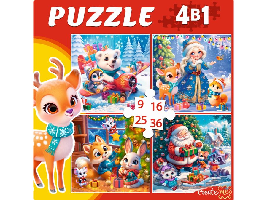 Пазлы Набор 4в1 9-16-25-36 элементов НГ Праздничная суета РЫЖИЙ КОТ П-7592