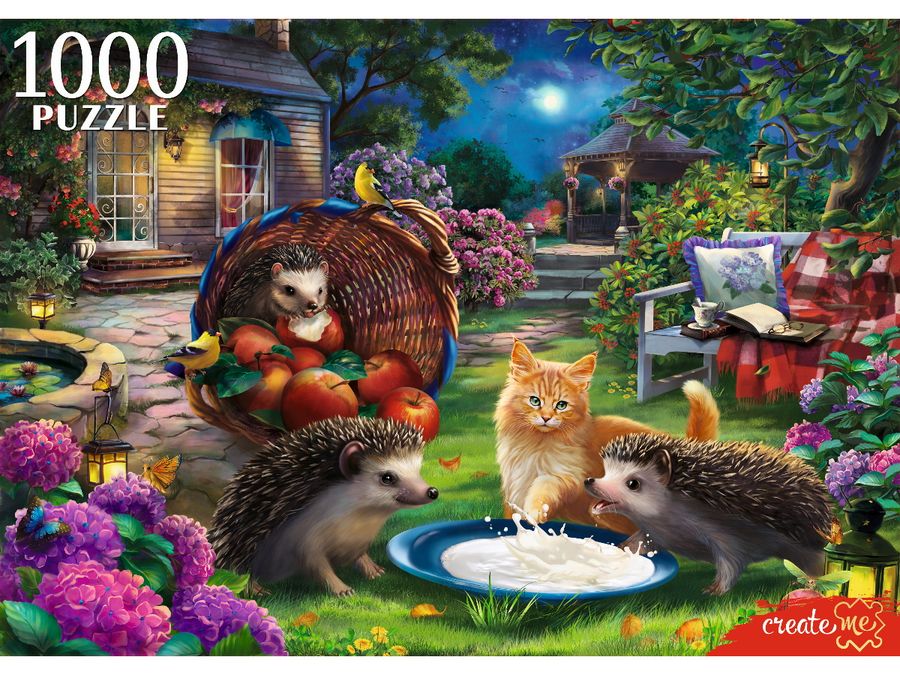 Пазлы 1000 элементов Ежи и котенок РЫЖИЙ КОТ Ф1000-6633