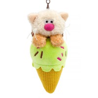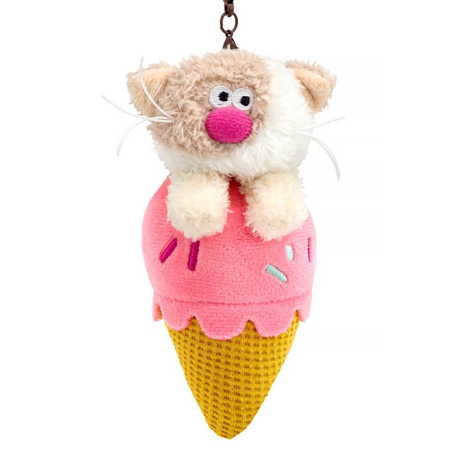 Забавный брелок в виде милого котёнка Латте из тактильно приятного эко меха в трёх оттенках: цвета молочного какао, цвета топлёного молока и белоснежного цвета молочной пенки. Котёнок удобно устроился на рожке клубничного мороженого. Мороженое сшито из вафельной ткани цвета печенья, имитирующей вафельный рожок, и софта цвета нежной клубники с вышитой карамельной посыпкой. У брелока удобный карабин шоколадного цвета с застежками, который можно отстегнуть. У кофейного котика и десерта есть петелька, каждого можно использовать по отдельности как брелок.