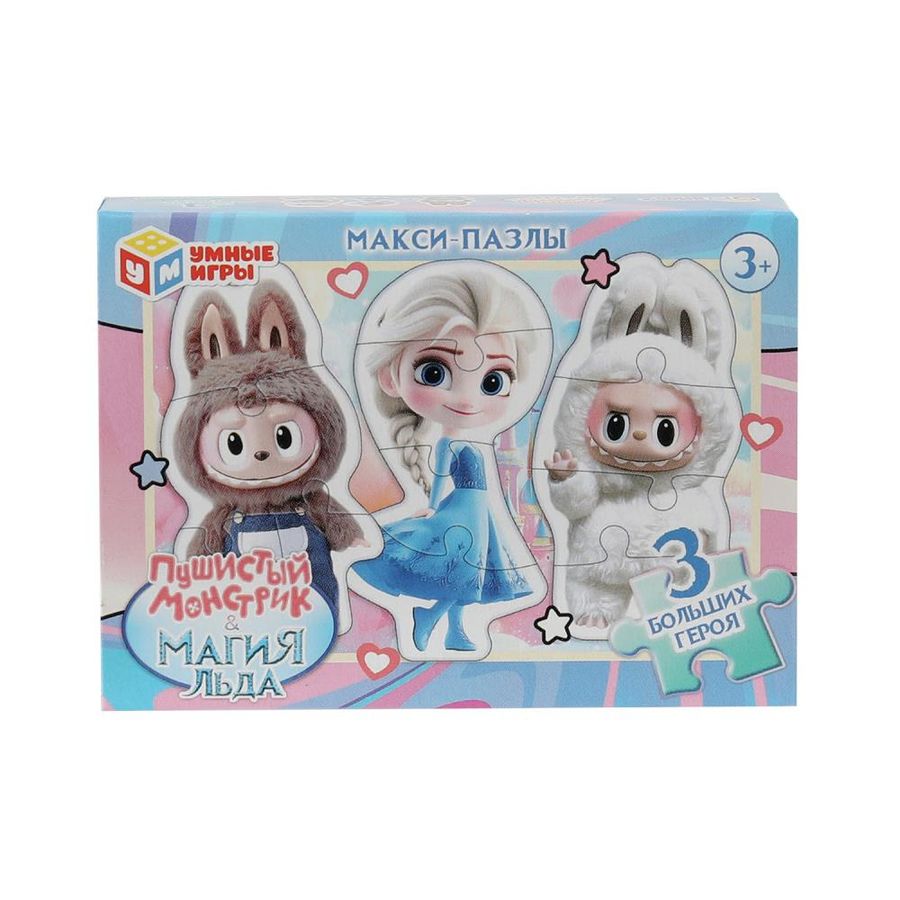Игра-головоломка — макси-пазлы «Пушистые монстрики & Магия льда» ТМ «Умные игры» — отличная развивающая игра для самых маленьких: - 3 больших героя - крупные детали - раннее развитие - удобно для детских пальчиков - популярные персонажи - красочный дизайн - плотный картон Задача ребёнка – подобрать половинки пазлов из набора так, чтобы собрать фигурные картинки с изображением очаровательной снежной принцессы и милых улыбающихся монстриков — всего 3 варианта. Благодаря небольшому количеству деталей, малыш без труда сможет выполнить задание, с каждым разом делая это всё лучше и быстрее. Собирая пазлы ТМ «Умные игры», ребёнок будет развивать: - внимание - память - мышление - моторику - усидчивость Размер упаковки: 90 х 65 х 25 мм. Материал: картон. Рекомендовано детям от 3-х лет. В упаковке 32 шт.