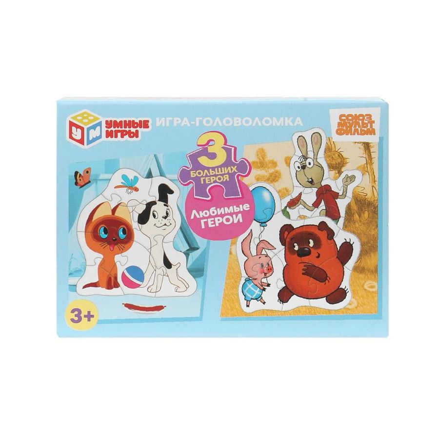 Игра-головоломка с фигурными деталями «Союзмультфильм. Любимые герои» ТМ «Умные игры» — отличная развивающая игра для самых маленьких: - 3 больших героя - раннее развитие - удобно для детских пальчиков - любимые персонажи - красочный дизайн - плотный картон Задача ребёнка – подобрать половинки пазлов из набора так, чтобы собрать картинки с изображением героев известных мультфильмов студии «Союзмультфильм» — всего 3 варианта. Благодаря небольшому количеству деталей, малыш без труда сможет выполнить задание, с каждым разом делая это всё лучше и быстрее. Собирая пазлы ТМ «Умные игры», ребёнок будет развивать: - внимание - память - мышление - моторику - усидчивость Размер упаковки: 90 х 65 х 25 мм. Материал: картон. Рекомендовано детям от 3-х лет. В упаковке 32 шт.
