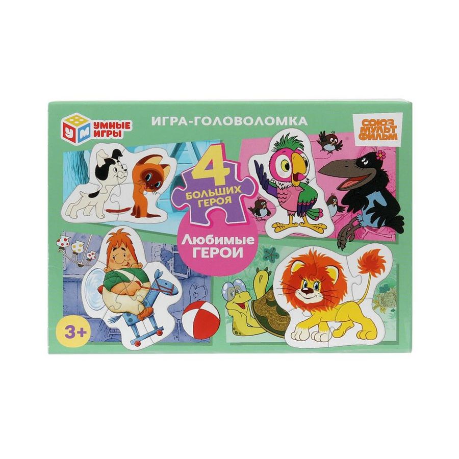 Игра-головоломка с фигурными деталями «Союзмультфильм. Любимые герои» ТМ «Умные игры» — отличная развивающая игра для самых маленьких: - 4 больших героя - крупные детали - раннее развитие - удобно для детских пальчиков - любимые персонажи - красочный дизайн - плотный картон Задача ребёнка – подобрать половинки пазлов из набора так, чтобы собрать картинки с изображением героев известных мультфильмов студии «Союзмультфильм» — всего 4 варианта. Благодаря небольшому количеству деталей, малыш без труда сможет выполнить задание, с каждым разом делая это всё лучше и быстрее. Собирая пазлы ТМ «Умные игры», ребёнок будет развивать: - внимание - память - мышление - моторику - усидчивость Размер упаковки: 130 х 90 х 25 мм. Материал: картон. Рекомендовано детям от 3-х лет. В упаковке 16 шт.