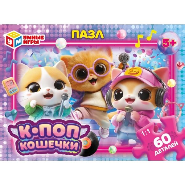 Классические пазлы в коробке «К-поп кошечки» ТМ «Умные игры» непременно понравятся маленьким любознайкам: - 60 деталей - размер готовой картинки: 330 х 237 мм - насыщенные цвета - милые персонажи - все элементы хорошо и плотно соединяются друг с другом Данный пазл представляет собой игру-головоломку, в которой необходимо в правильной последовательности соединить элементы друг с другом и получить в результате красочную картинку с изображением очаровательных кошечек-певиц. Сборка пазлов – это очень увлекательное занятие, в процессе которого дети учатся искать и совмещать детали разной формы, с каждым разом делая это всё лучше и быстрее. Собирая пазлы ТМ «Умные игры», ребёнок будет развивать: - внимание - цветовое восприятие - логическое мышление - мелкую моторику - усидчивость Размер упаковки: 190 x 141 x 35 мм. Материал: картон. Рекомендовано детям от 5-ти лет.