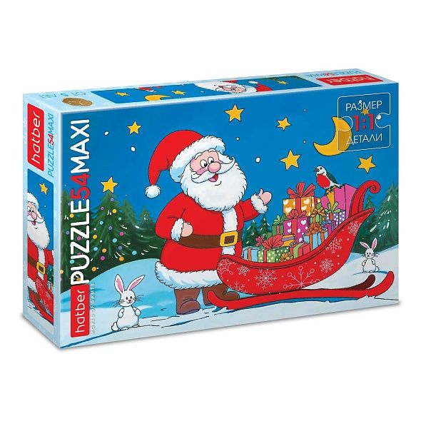 Пазлы 54 элемента Макси Дед Мороз с подарками HATBER 54ПЗ3_35269