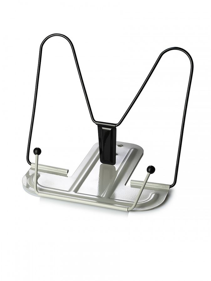 Подставка для книг из прочного металла, несколько уровней наклона, цвет серый. Благодаря износостойкому покрытию, подставка будет оставаться в хорошем состоянии долгое время. Держатель, расположенный в нижней части, надежно фиксирует страницы.Упаковка — пакет, европодвес.