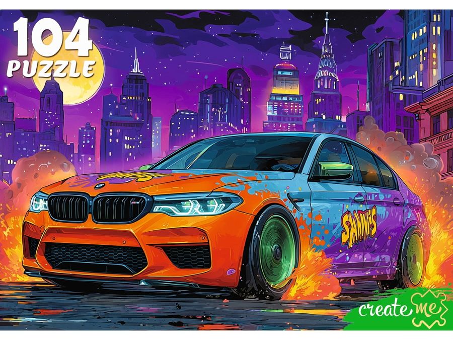 Пазлы 104 элемента Яркий автомобиль РЫЖИЙ КОТ УК104-2392