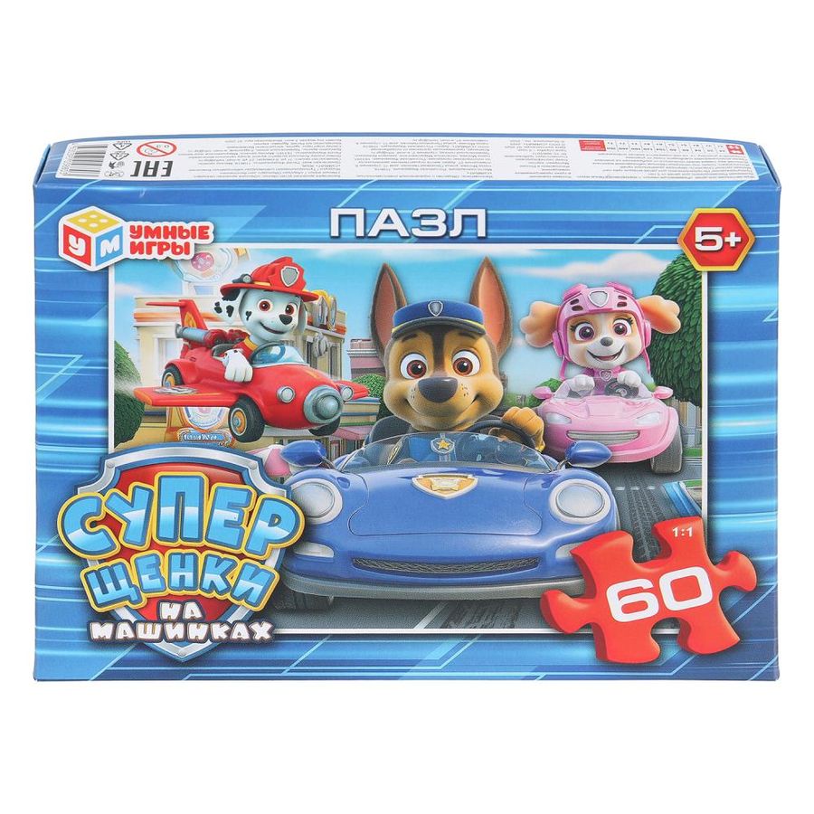 Классические пазлы в коробке «Суперщенки в машинках» ТМ «Умные игры» – отличный подарок для детей: - 60 деталей - размер готовой картинки: 330 х 237 мм - насыщенные цвета - все элементы хорошо и плотно соединяются друг с другом Данный пазл представляет собой игру-головоломку, в которой необходимо в правильной последовательности соединить элементы друг с другом и получить в результате красочную картинку с изображением отважных суперщенков на крутых машинках. Сборка пазлов - это очень увлекательное занятие, в процессе которого дети учатся искать и совмещать детали разной формы, с каждым разом делая это всё лучше и быстрее. Собирая пазлы ТМ «Умные игры», ребёнок будет развивать: - внимание - память - мышление - моторику - усидчивость Размер упаковки: 190 x 141 x 35 мм. Материал: картон. Рекомендовано детям от 5-ти лет.
