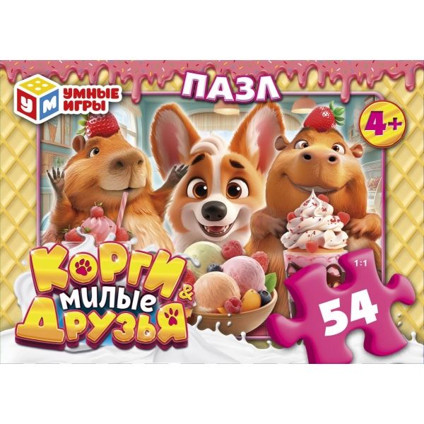 Классические пазлы в коробке «Животные в лесу» ТМ «Умные игры» непременно понравятся маленьким любознайкам: - 54 детали - размер готовой картинки: 175 х 130 мм - насыщенные цвета - все элементы хорошо и плотно соединяются друг с другом Данный пазл представляет собой игру-головоломку, в которой необходимо в правильной последовательности соединить элементы друг с другом и получить в результате красочную картинку с изображением забавных животных-сладкоежек – корги и капибар. Сборка пазлов – это очень увлекательное занятие, в процессе которого дети учатся искать и совмещать детали разной формы, с каждым разом делая это всё лучше и быстрее. Собирая пазлы ТМ «Умные игры», ребёнок будет развивать: - внимание - цветовое восприятие - логическое мышление - мелкую моторику - усидчивость Размер: 90 х 65 х 25 мм. Материал: картон. Рекомендовано детям от 4-х лет.