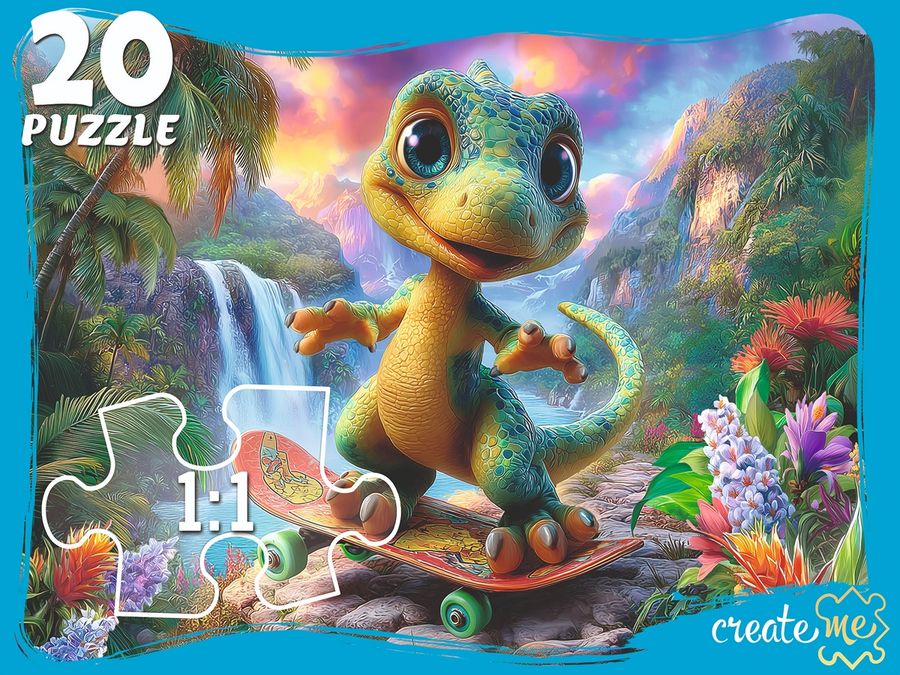 Пазлы 20 элементов фигурные Динозаврик на скейте РЫЖИЙ КОТ Ф20-3168