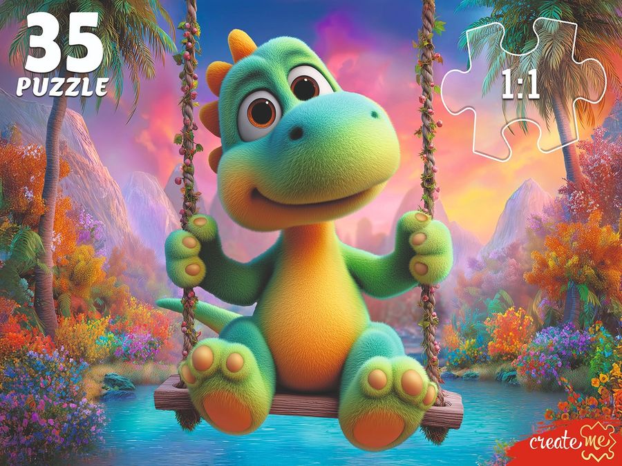 Пазлы 35 элементов Динозаврик на качелях РЫЖИЙ КОТ Ф35-3423