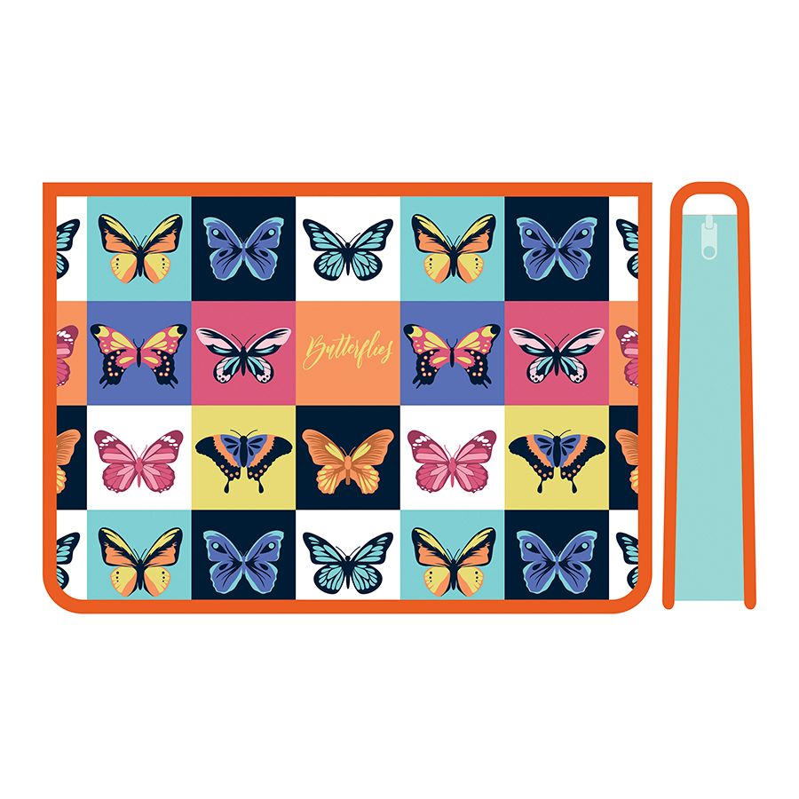 Папка для труда А4 пластиковая, молния сверху с дизайном, 325/230/100 (40) (ПТР-22, ПАТТЕРН БАБОЧКИ 2023)
