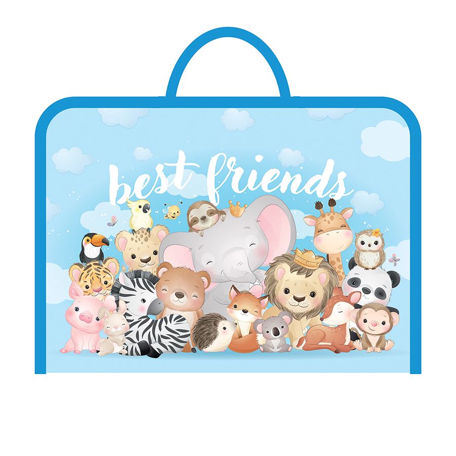 Папка для труда А4, молния вокруг, печать на пластике, ручки-тесьма, 325/230/25 (50) (ПТР-6, МАЛЕНЬКИЕ ДРУЗЬЯ 2023), ПТР-6