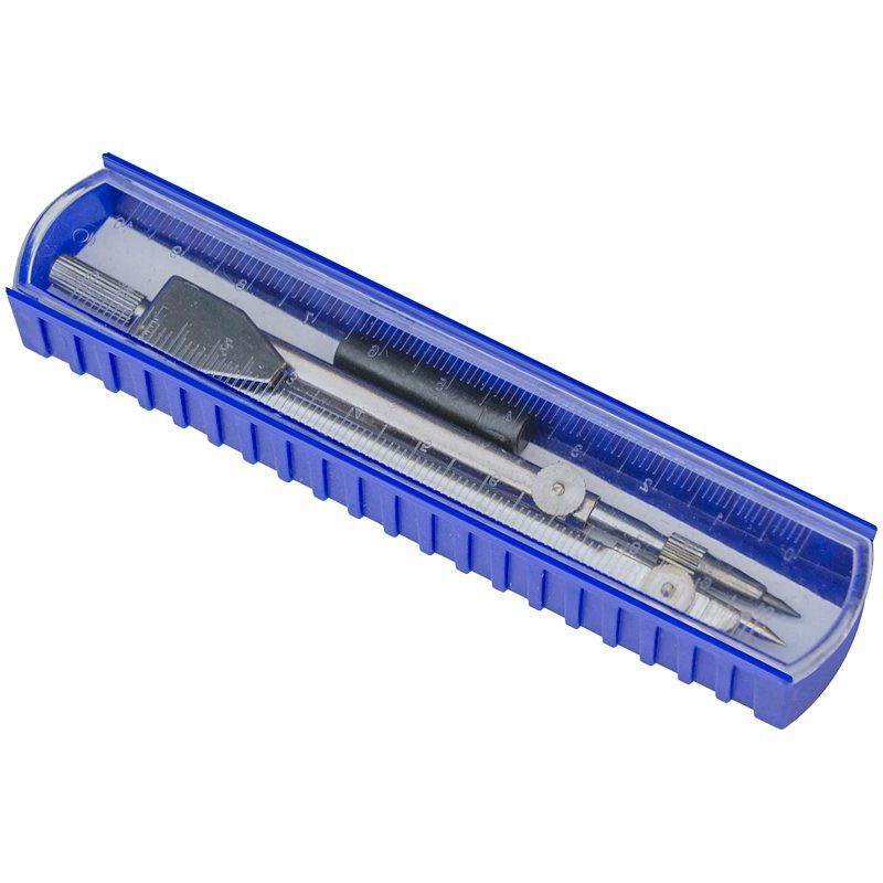 Циркуль металлический в пластиковом пенале с линейкой, в комплекте сменные стержни