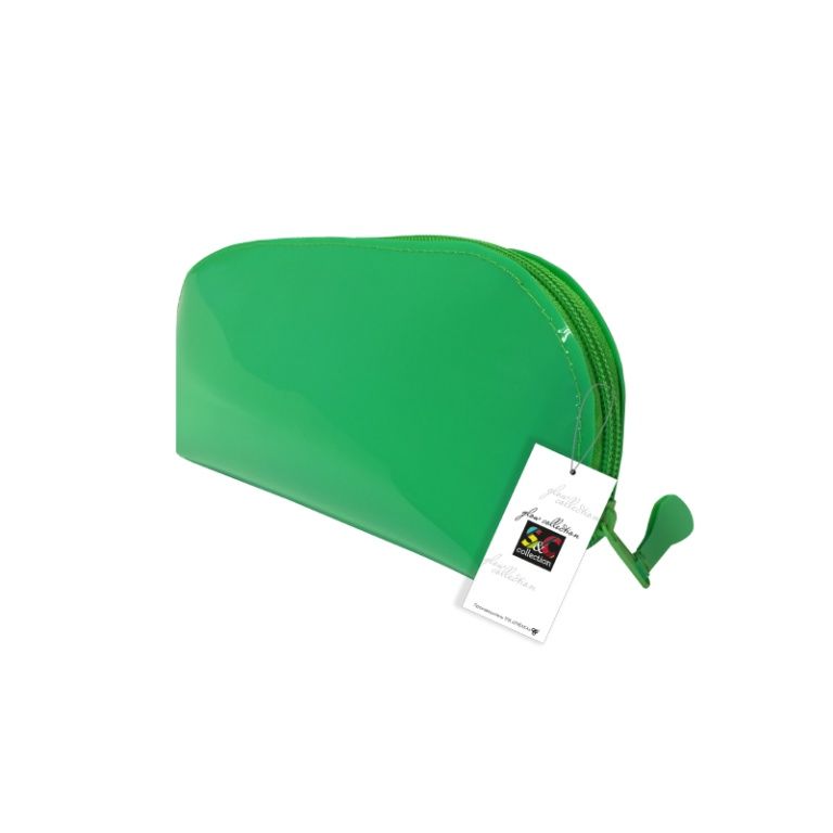 Пенал косметичка К-725 Зеленый неон глянец полукруглый (универсальный)