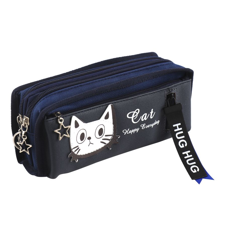 Пенал косметичка 2отд. Cat прямоугольный 190*80*60мм синий Кокос 215688/2 (жен)