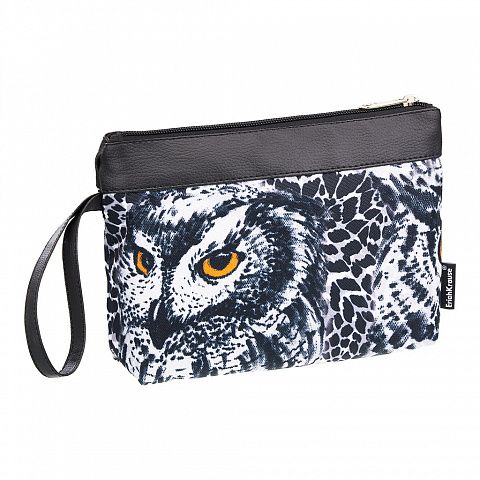 Компактная косметичка, декорированная элементами из кожзама. Имеет одно вместительное отделение на молнии с мягким ходом и внутренний органайзер для мелочей. Материал — 100% износостойкий полиэстер, искусственная кожа. Размер — 23х16 см.