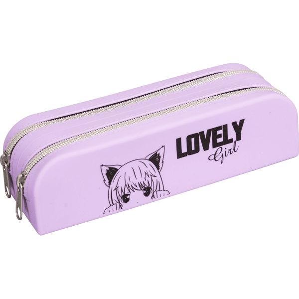 Пенал "deVENTE. Lovely Girl" 20,5x5,7x6,8 см, прямоугольный для 60 предметов, силиконовый, 2 отделения на молнии, в пластиковой коробке с европодвесом, сиреневый.