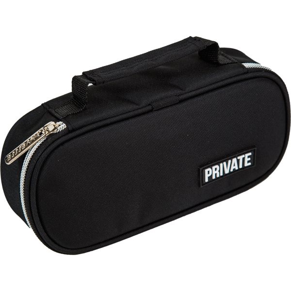 Пенал "deVENTE. Private" 21x10x6 см, овальный для 60 предметов, с внутренним органайзером-тройной створкой, с ручкой для переноски, текстильный с каучуковой аппликацией, на молнии, черный.