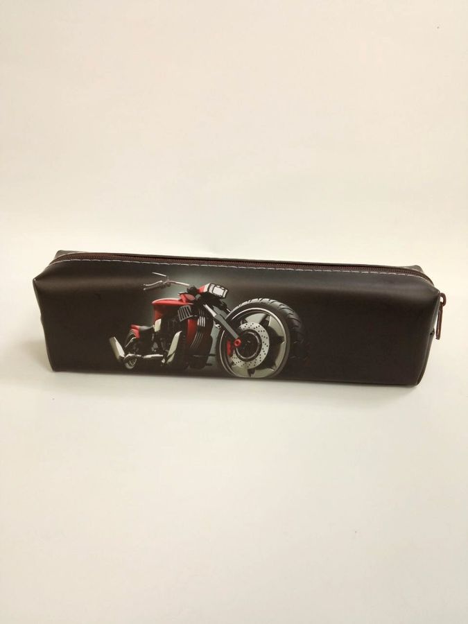 Пенал 21x5,5x4 см, выполнен из плотной экокожи, линейка из 4 принтов гоночных мотоциклов, формообразующий материал внутри, индивидуальная упаковка из жесткого пластика, ассорти 4 дизайна