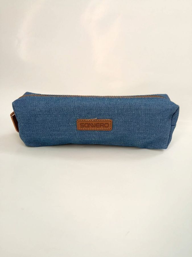 Пенал 21,5x7x5,5 см, выполнен из износостойкой джинсовой ткани, вставки из экокожи, формообразующий материал внутри, индивидуальная упаковка. Представлен в трех классических джинсовых расцветках, ассорти.