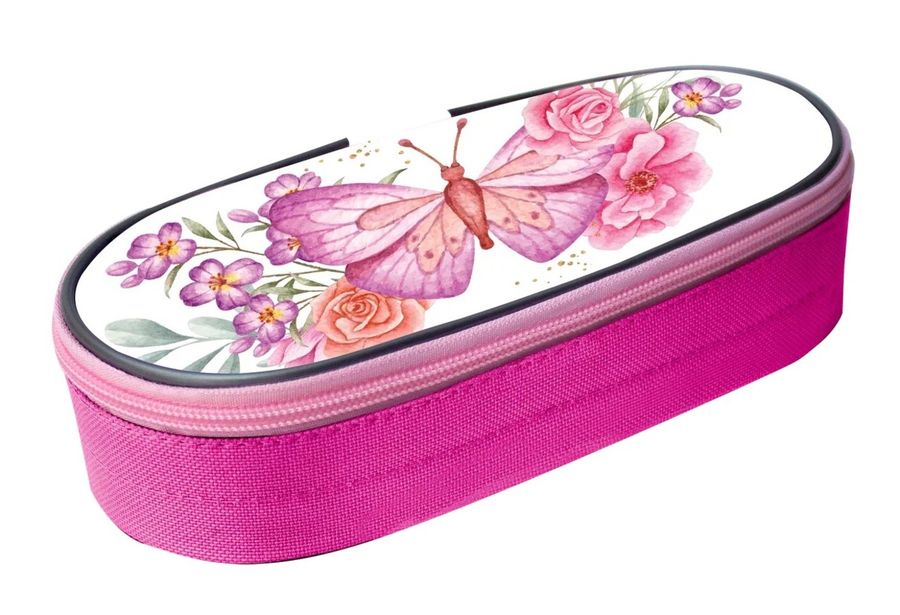 Пенал-косметичка объемный, жесткий, печать на ткани 210/85/50 (20) (К-61, РОЗОВАЯ БАБОЧКА 2024)