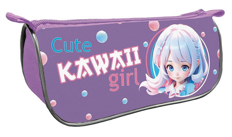 Пенал-косметичка объемный на молнии ПРЕМИУМ, печать на ткани 220/105/65 (12) (К-7, ОЧАРОВАТЕЛЬНАЯ МАЛЫШКА 2025)