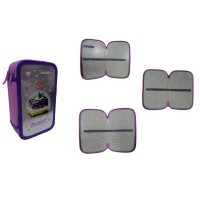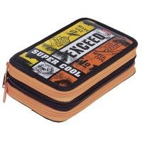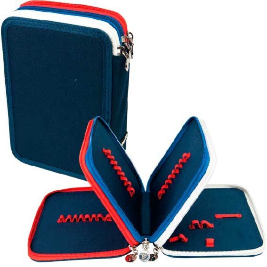 Пенал "deVENTE. 3 Colors" 21x14,5x6,5 см, трехстворчатый прямоугольный для 68 предметов, текстильный, на молнии, внутри обтянуто текстилем, темно-синий с молниями - триколор