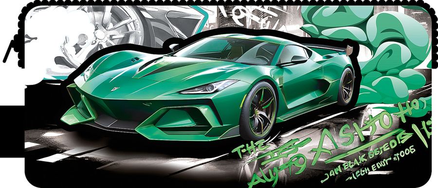 Пенал косметичка 1отд. Зеленый спорткар 200х90х40мм ПЧЕЛКА К-10 (муж)