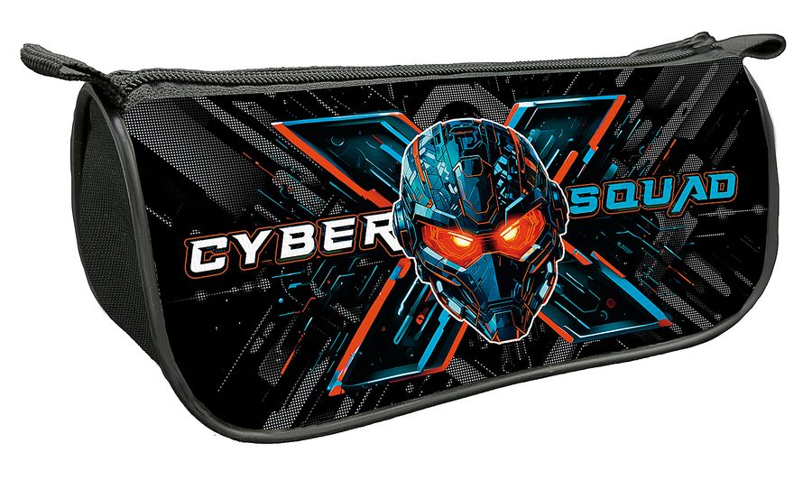Пенал-косметичка объемный на молнии ПРЕМИУМ, печать на ткани 220/105/65 (12) (К-7, КИБЕР БОТ 2025)