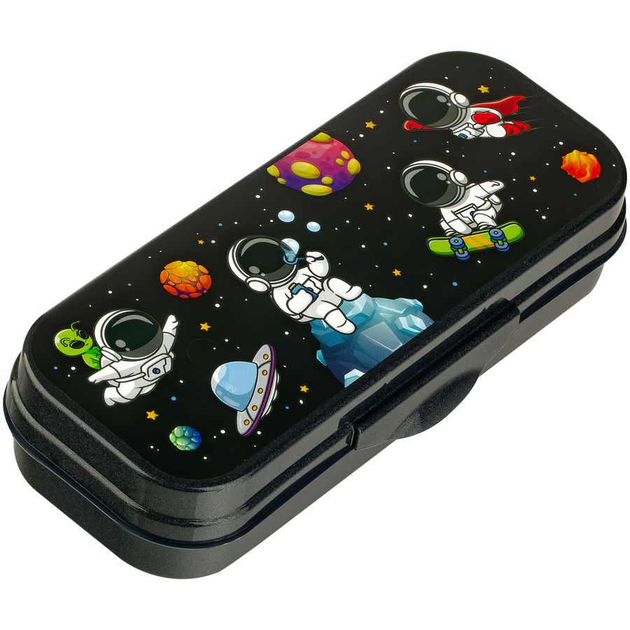 Пенал-футляр «СТАММ» «Космонавты» поможет стильно и аккуратно хранить канцелярские принадлежности. Лёгкий и прочный пенал прямоугольной формы оборудован одним отделением повышенной вместимости. Размер изделия – 215*90*43 мм. Он изготовлен из качественного полипропилена и имеет надёжный и лёгкий в обращении замок. Изделие цвета чёрный металлик представлено в ярком и стильном дизайне. • Размер: 215*90*43 мм;• Форма: прямоугольная;• Материал: полипропилен;• Цвет: чёрный металлик.